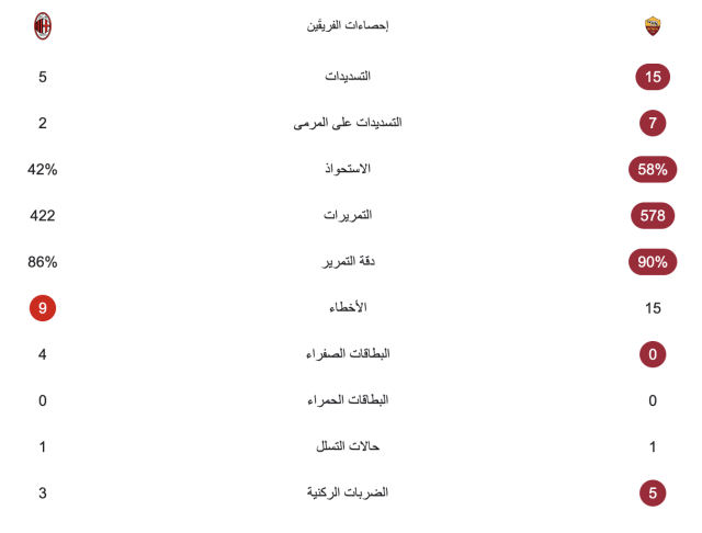 وشهدت المباراة تفوق كبير من جانب روما على منافسه، لكنه فشل في تسجيل أكثر من هدف، ليتقاسما نتيجة المباراة.