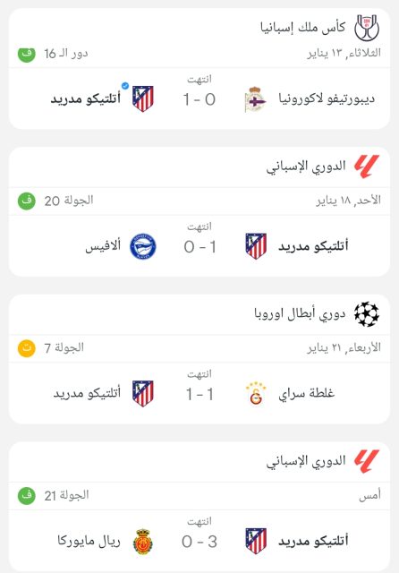 وجاءت نتائج أتلتيكو مدريد كالتالي :