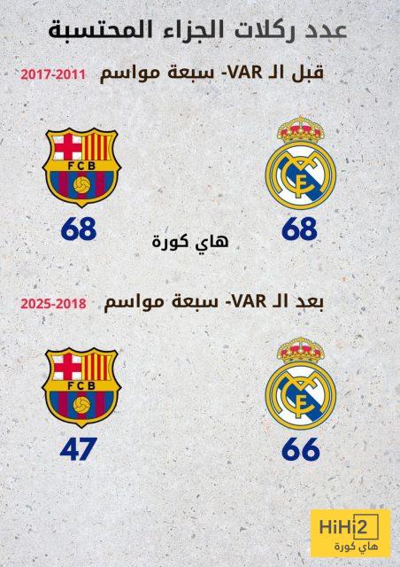 برشلونة احتسبت له 68 ركلة جزاء قبل تقنية الـ VAR وبعد التقنيه تراجع الى 47