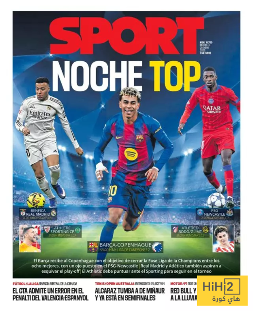 هاي كورة – تتجه أنظار الصحافة الإسبانية نحو ليلة أوروبية مشتعلة في دوري أبطال أوروبا، مع مواجهة ريال مدريد وبنفيكا في لقاء مليء بالذكريات، وصدام برشلونة وكوبنهاغن وسط حسابات لا تقبل الخطأ، وقبل انطلاق المباريات، جاءت عناوين الصحف حادة ومليئة بالرسائل التي تعكس ثقل الليلة المنتظرة.