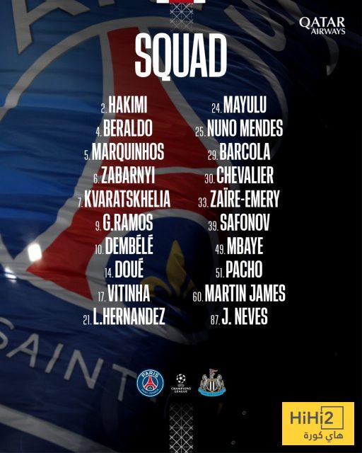 إليكم قائمة باريس سان جيرمان الرسمية للقاء نيوكاسل