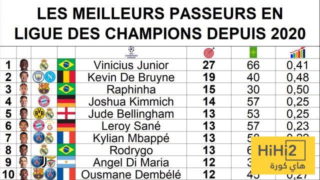 ويأتي فينيسيوس في المرتبة الأولى بواقع 27 صناعة ويليه النجم البلجيكي كيفين دي بروين بواقع 19 ، فيما يحتل البرازيلي رافينيا لاعب برشلونة المركز الثالث بـ15 صناعة.