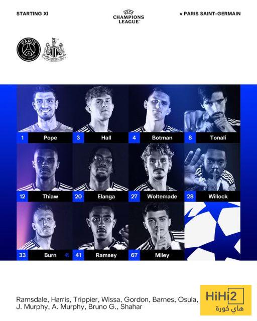 تشكيلة نيوكاسل ضد باريس سان جيرمان في دوري أبطال أوروبا