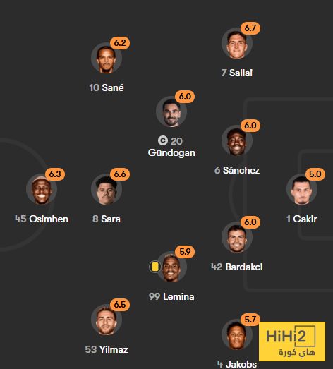 تقييم لاعبو غلطة سراي في الشوط الاول ضد السيتي :
