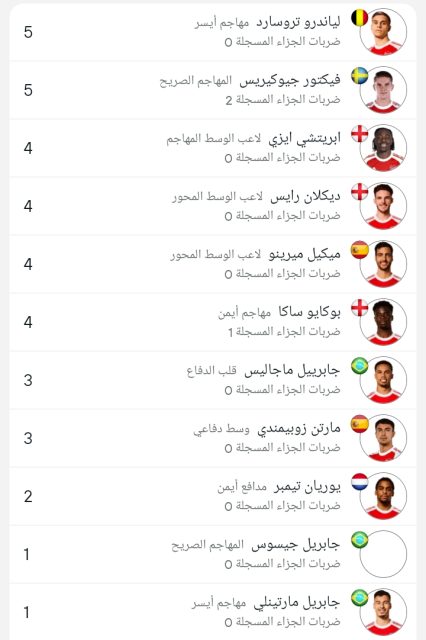وجاءت قائمة هدافي أرسنال كالتالي :