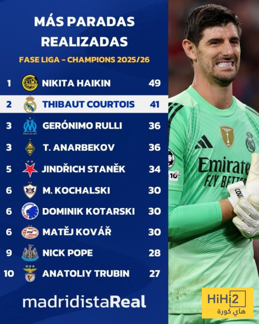 هاي كورة- اصبح تيبو كورتوا هو اكثر حارس تصدي في دور المجموعات ببطولة دوري ابطال اوروبا هذا الموسم ، وتواجد الحارس البلجيكي في قائمة تضم حراس اضعف الفرق في البطولة .