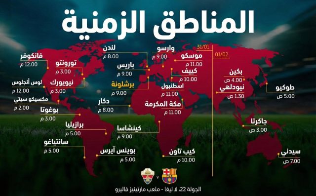 صورة – توقيت مباراة برشلونة وإلتشي حول العالم