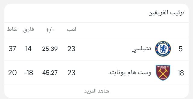 وجاء ترتيب الفريقين كالتالي :