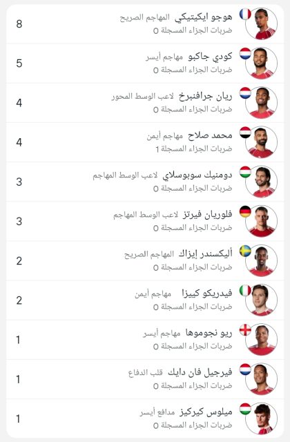 وجاءت قائمة هدافي ليفربول كالتالي :