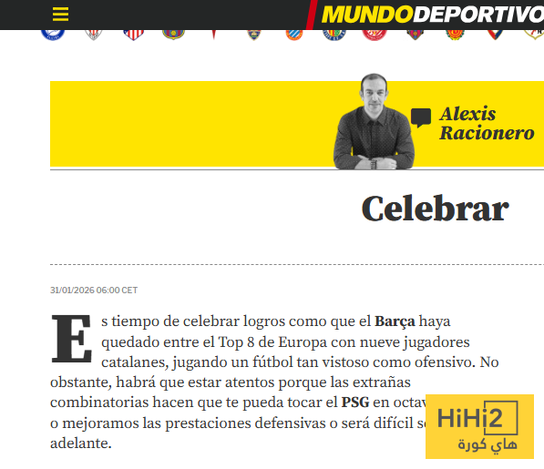 حان وقت الاحتفال بإنجازات مثل وصول برشلونة إلى المراكز الثمانية الأولى في أوروبا بتسعة لاعبين كتالونيين ، وتقديمهم كرة قدم جذابة وهجومية. مع ذلك، علينا توخي الحذر لأن القرعة غير المعتادة قد تُعرضنا لمواجهة باريس سان جيرمان في دور الستة عشر . إذا حدث ذلك ، فسيتعين علينا إما تحسين أدائنا الدفاعي أو سيصعب علينا التأهل .