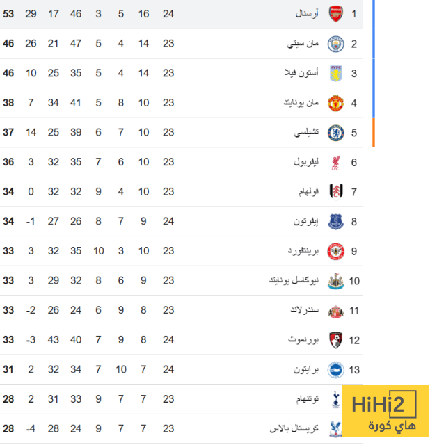 اليكم ترتيب البريميرليغ :