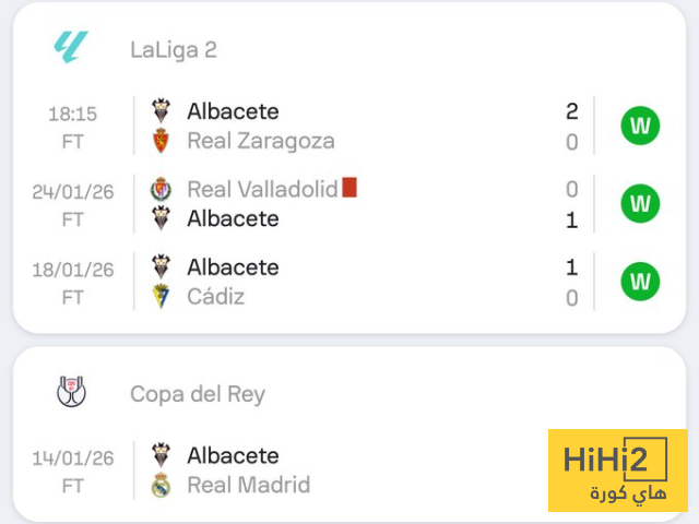 نادي ألباسيتي حقق 4 انتصارات متتالية في جميع المسابقات لأول مرة منذ موسمين ، آخرها انتصاره اليوم على ريال سرقسطة بنتيجة 2-0 .