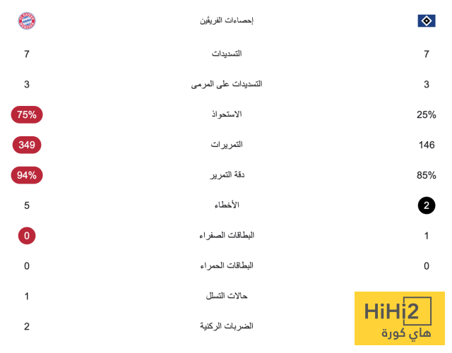 إحصائيات الشوط الأول: