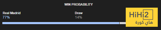 نسبة فوز الريال تصل الى 77 % ، والتعادل 14 % أما الخسارة لا تتجاوز الـ 9 %.