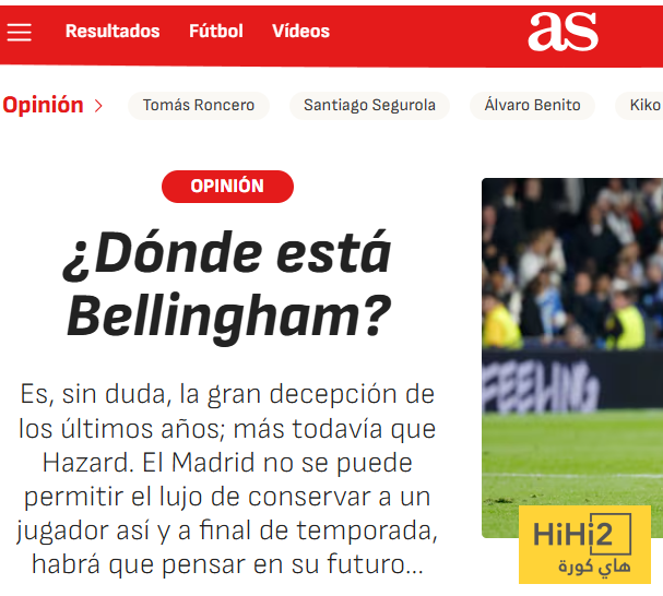 والآن علينا أن نسأل أنفسنا : أين بيلينغهام ؟ أين جود الذي عرفناه في الأشهر الأربعة الأولى له في العاصمة الإسبانية ؟ أخشى ألا نراه مجددا . أتمنى أن أكون مخطئا ، لكن المؤشرات الأخيرة سلبية للغاية. لم تعد الابتسامة تعلو وجهه، مرآة روحه، بل علامات غضب دائم . لا يستطيع ريال مدريد تحمل تكلفة بقاء لاعب كهذا في نهاية الموسم ؛ سيتعين عليهم التفكير بجدية في مستقبل اللاعب الإنجليزي .