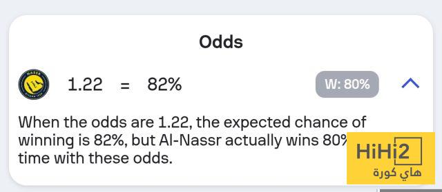نسبة فوز النصر في المباراة تصل إلى 80% ، فيما انقسمت الـ 20% المتبقية ما بين التعادل والهزيمة