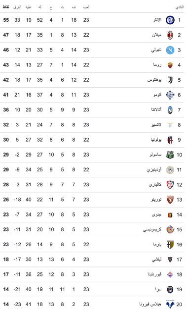 ورفع الإنتر رصيده من النقاط إلى 55 نقطة في المركز الأول، ليبتعد عن ميلان صاحب المركز الثاني بفارق 8 نقاط.