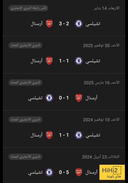 إليكم نتائج أخر 5 مباريات جمعت أرسنال و تشيلسي: