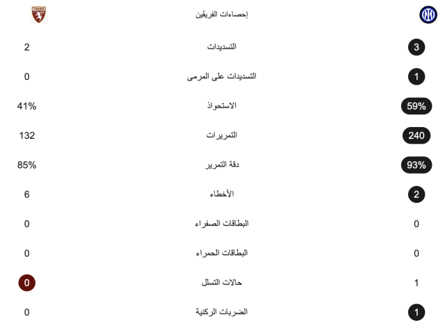 وتشير نتيجة المباراة حاليًا إلى التعادل السلبي ما بين الفريقين مع أفضلية للإنتر من حيث المحاولات على المرمى.