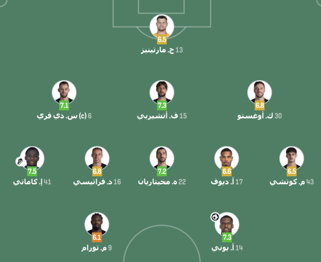 هاي كورة – حصل لاعبو إنتر ميلان على تقييمات جيدة بعد أدائهم في الشوط الأول من مباراة تورينو بالدور ربع النهائي من كأس إيطاليا.