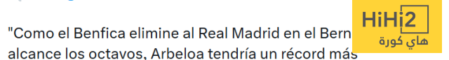 إذا أقصى بنفيكا ريال مدريد في ملعب سانتياغو برنابيو ولم يصل إلى دور الـ 16 ، فسيكون لدى أربيلوا رقم قياسي آخر .