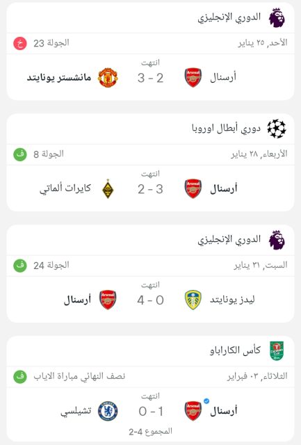 وجاءت نتائج أرسنال كالتالي :