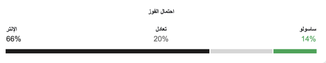 نسبة فوز إنتر ميلان 66%، ونسبة فوز ساسولو 14%، ونسبة التعادل 20%.
