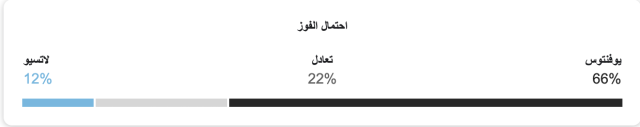 نسبة فوز يوفنتوس 66%، ونسبة فوز لاتسيو 12%، ونسبة التعادل 22%.