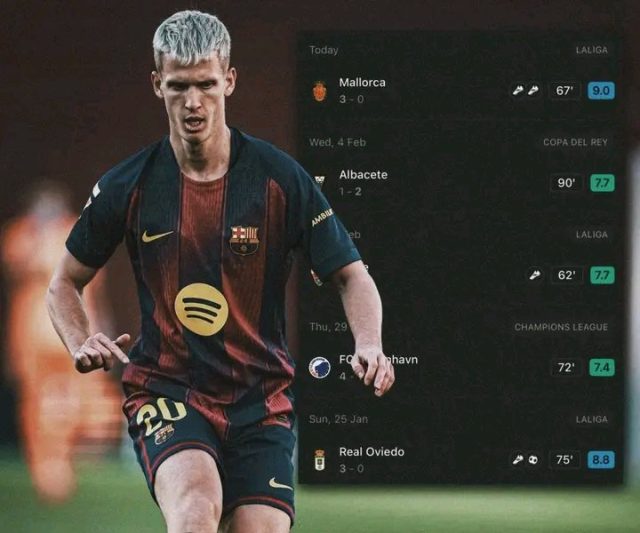 حيث تمكن أولمو من تسجيل 5 مساهمات تهديفية مع برشلونة خلال آخر خمس مباريات .