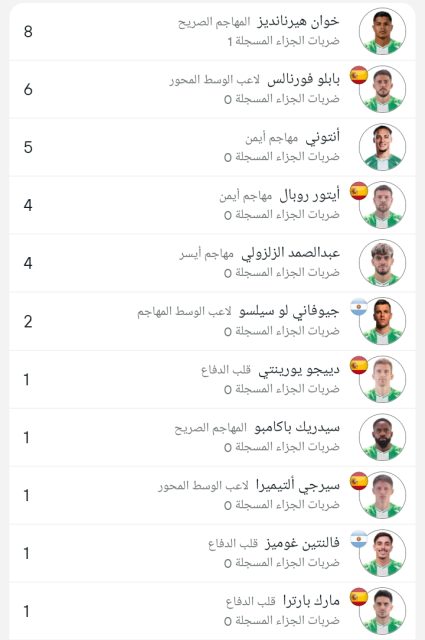 وجاءت قائمة هدافي ريال بيتيس كالتالي :