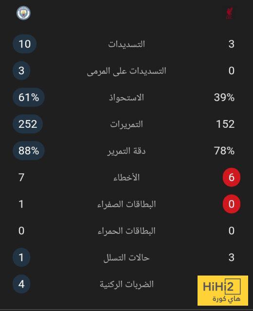 إليكم احصائيات شوط ليفربول و مانشستر سيتي :