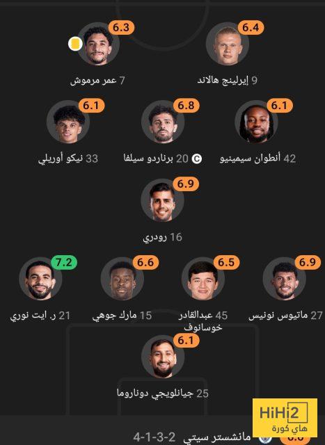 إليكم تقييم مانشستر سيتي في الشوط الأول أمام ليفربول :