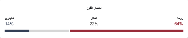 نسبة فوز روما 64%، ونسبة فوز كالياري 14%، ونسبة التعادل 22%.