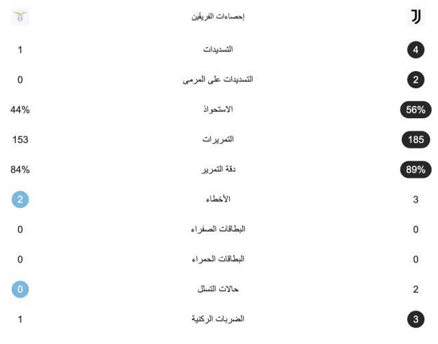إحصائيات نصف ساعة من مباراة يوفنتوس ولاتسيو
