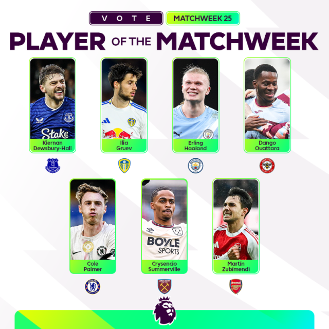 وشهدت الترشحات تواجد سبعة لاعبين من مختلف الأندية، أبرزهم إرلينغ هالاند، وكول بالمر، ومارتن زوبيميندي.