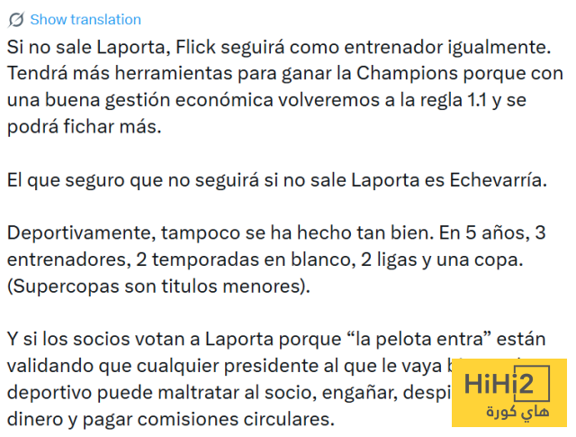 إذا لم يرحل لابورتا، فسيظل فليك مدربًا . سيملك حينها أدوات أكثر للفوز بدوري أبطال أوروبا ، فمع الإدارة المالية الجيدة ، سنعود إلى قاعدة 1.1 وسنتمكن من التعاقد مع المزيد من اللاعبين .