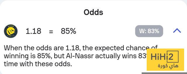 نسبة فوز النصر في المباراة تصل إلى 83% ، فيما انقسمت الـ 17% المتبقية ما بين التعادل والهزيمة