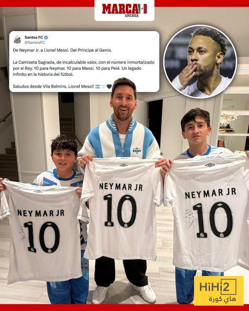 هاي كورة – أرسل نادي سانتوس هدية خاصة من نيمار لليونيل ميسي وأبنائه ، وهي قمصان موقعة من قبل النجم البرازيلي .