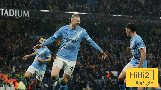 سجل اهداف السيتي سيمينيو و اوريلي و هالاند في الدقائق 39،30،24 .