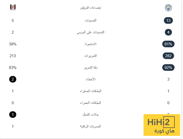هاي كورة- انتهت احداث الشوط الاول بتقدم مانشستر سيتي امام نظيره فولهام ، بثلاثية نظيفة ، في الدوري الانجليزي الممتاز ضمن منافسات الجولة السادسة والعشرين من المسابقة المحلية وذلك على ملعب الاتحاد.