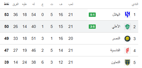 هاي كورة : بعد فوز النادي الأهلي على نادي الشباب بخماسية مقابل هدفين في دوري روشن، تغيّر ترتيب القمة في الدوري بشكل واضح، مع تثبيت الأهلي في موقعه المتقدم واستمرار المنافسة الشديدة بين الفرق الكبرى.