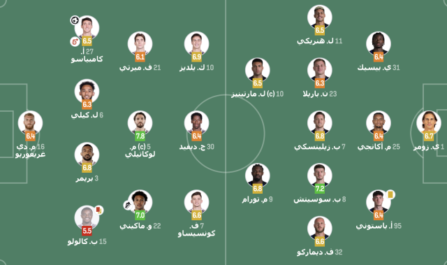 هاي كورة – حصل لاعبو إنتر ميلان ويوفنتوس على تقييمات متوسطة بعد أن انتهى الشوط الأول من مباراتهما بالتعادل الإيجابي بهدف لمثله.