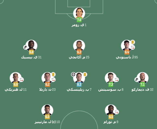 هاي كورة – حصل إنتر ميلان على نتيجة جيدة بفوزه على يوفنتوس 3-2 في قمة الجولة الـ25 من الدوري الإيطالي، ولذلك استحق لاعبيه الحصول على تقييمات جيدة من موقع سوفا سكور.