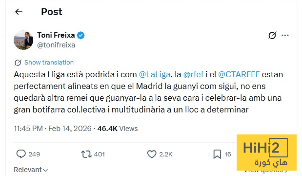 هاي كورة – انفجر توني فريشا، الإداري السابق لنادي برشلونة، على منصة X بعد فوز ريال مدريد الكبير على ريال سوسييداد 4-1 في سانتياغو برنابيو، معبّرًا عن غضبه من حكم المباراة إرنانديز مايزو.