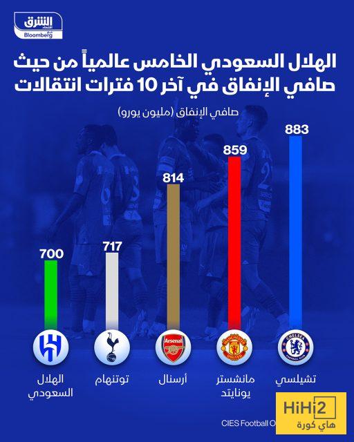 الهلال تواجد في هذه القائمة إلى جانب عدة أندية عالمية مثل مانشستر يونايتد الإنجليزي ، آرسنال ، توتنهام ، إضافة إلى تشيلسي ، الذي اعتلى صدارة القائمة بإنفاق بلغ 883 مليون يورو .