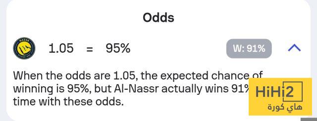 نسبة فوز النصر في المباراة تصل إلى 91% ، فيما انقسمت الـ 9% المتبقية ما بين التعادل والهزيمة