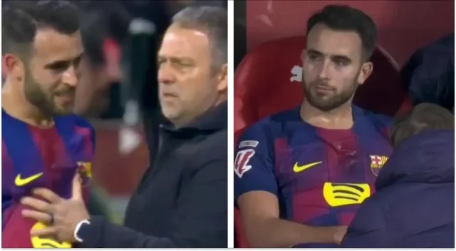 بدا مدافع برشلونة غاضباً بشكل واضح وعلى وشك البكاء وهو في طريقه إلى مقاعد البدلاء، حتى أنه لكم مقعده من شدة الإحباط قبل أن يستقر فيه.