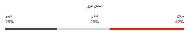 نسبة فوز ميلان 42%، ونسبة فوز كومو 29%، ونسبة التعادل 29%.