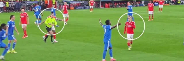 وراقب الحكم فينيسيوس وهو يرفع قميصه، ثم اندفع الحكم نحو فيني ومنحه بطاقة صفراء، لتكون هذه البطاقة من الأمور الغامضة في المباراة.