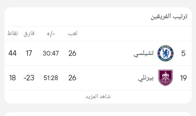 ترتيب تشيلسي وبيرنلي في البريميرليغ